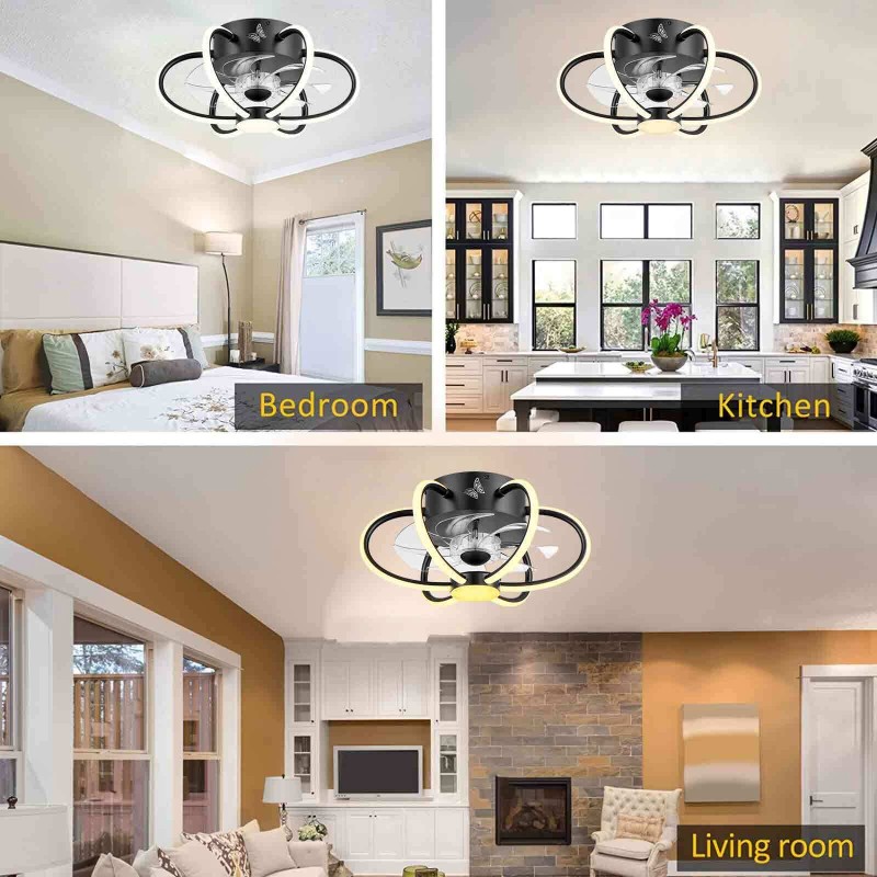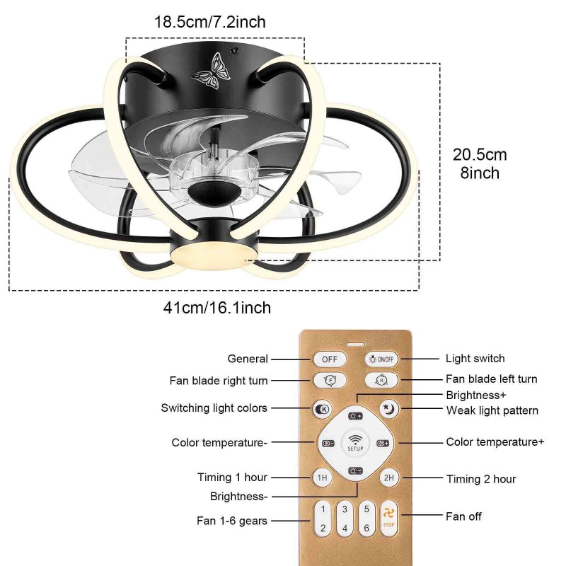 16.1" Flush Mount Ceiling Fan Light Dimmable LED Chandelier Lamp 6-Speed Remote