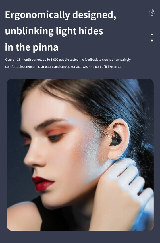 Invisible design and ergonomics: Invisible earplugs are designed according to the shape of the ear, with a very mini design style, which is very light and firmly fits the ear hook, suitable for long-term wear and will not cause discomfort to the ear.