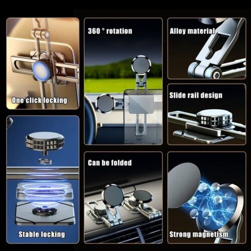 360° Rotation Magnetic Phone Holder Foldable Car Mount Stand Dashboard black