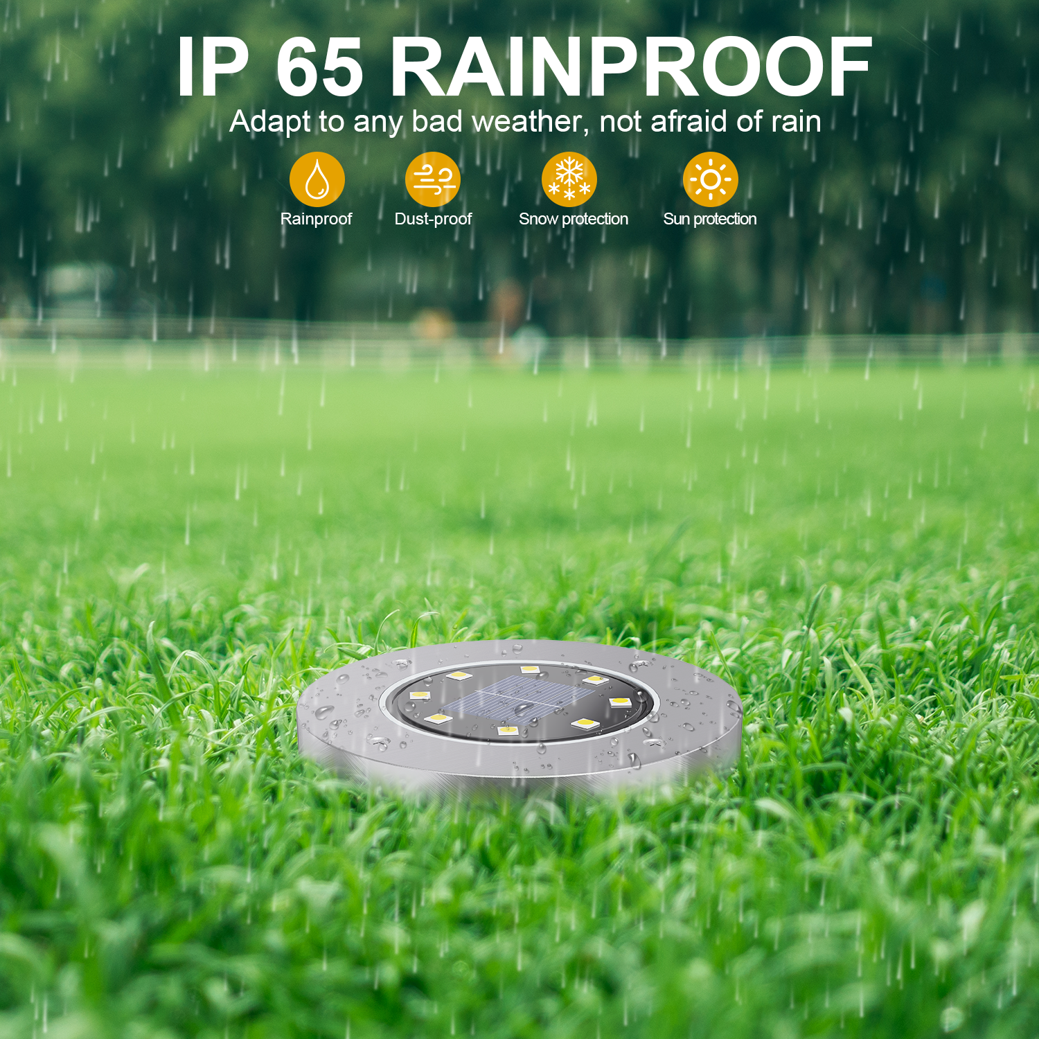 This "Solar Power Led Inground Light "is weatherproof outdoor light which is suitable for garden lighting, lawn lighting, pathway lighting, work entrances and hospitality venues.