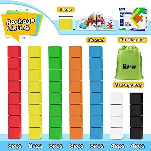 48PCS Magnetic Blocks for Toddlers Toys Large Magnetic Cube Toys for Sensory