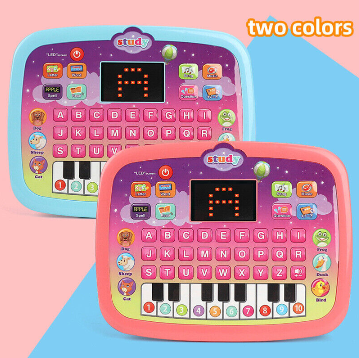 • Includes letters & words & math learning, interactive quiz games, piano playing, animal sounds, pleasant melodies, twinkling LED screen.
