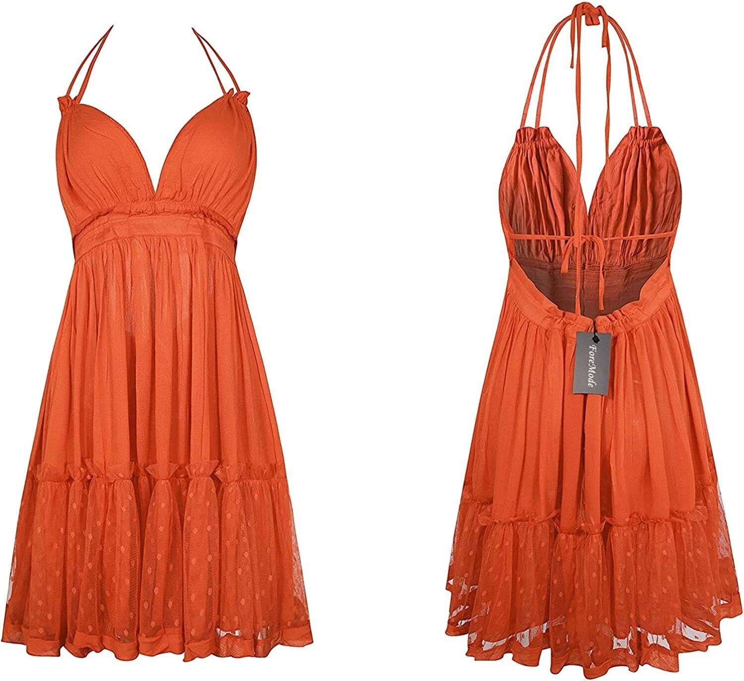 ForeMode Summer Deep V Neck Bohemian Women Mini Short Dress Backless Beach Boho