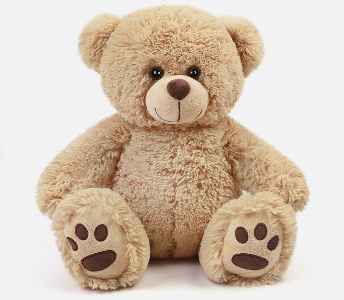 This teddy bear features embroidered paws for an extra cute touch; super soft fur, and a plump body for snuggling.