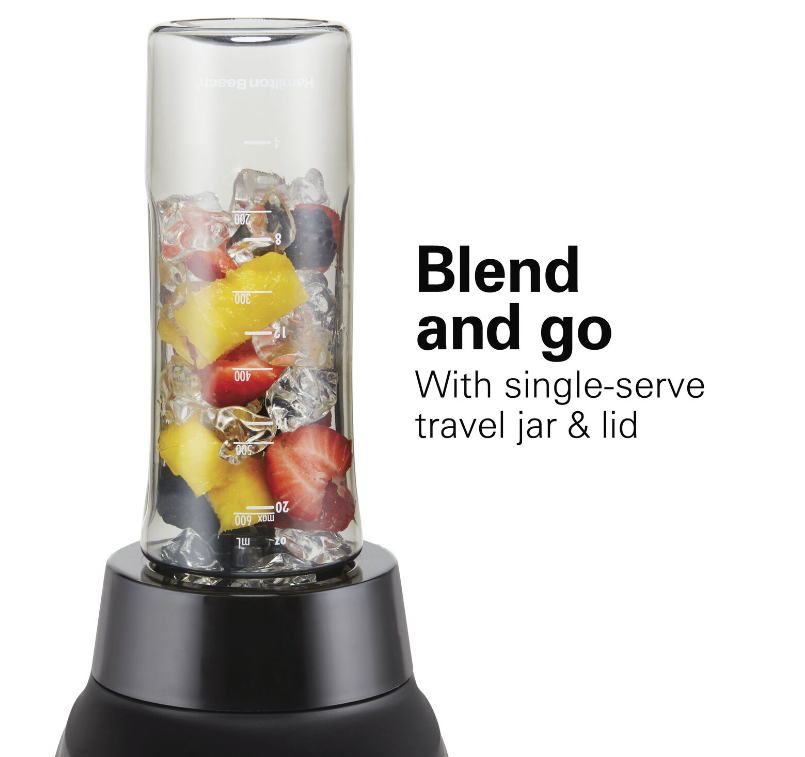 • SINGLE-SERVE PERSONAL BLENDER WITH TRAVEL JAR: This is the perfect blender for shakes and smoothies because you can blend in the 20 oz. travel jar and then grab it and go. The jar is BPA-free and includes a leak-proof lid.