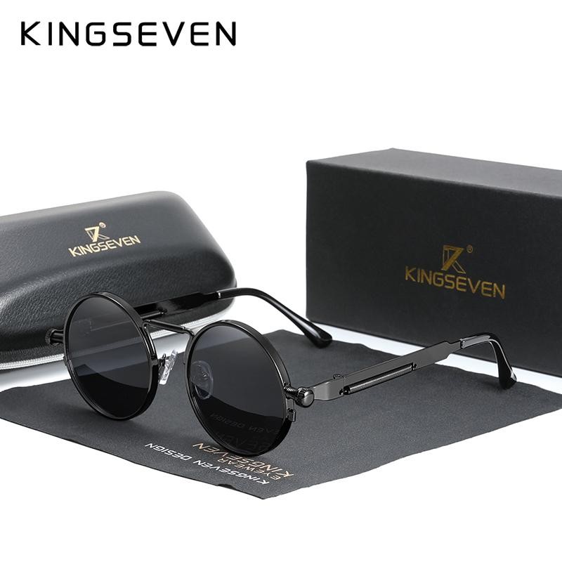 Kingseven High Quality Gothic Steampunk Sunglasses Polarized Men Women Brand Designer Vintage Round Metal Frame Sun Glasses
