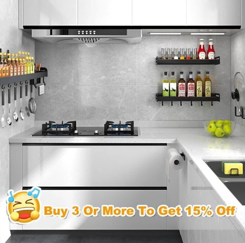 Kitchen Shelf Wall-mounted Spice Storage Racks Punch-free Kitchen Knife Holder Wall Season Bottle Chopstick Tube Shelf Organizer