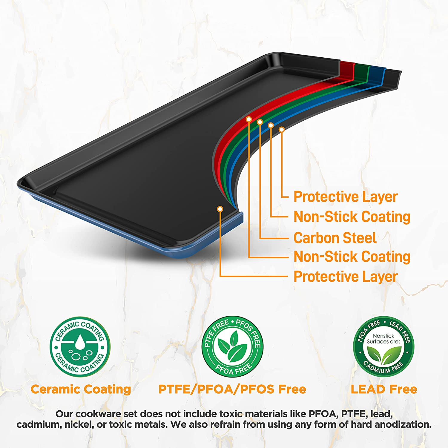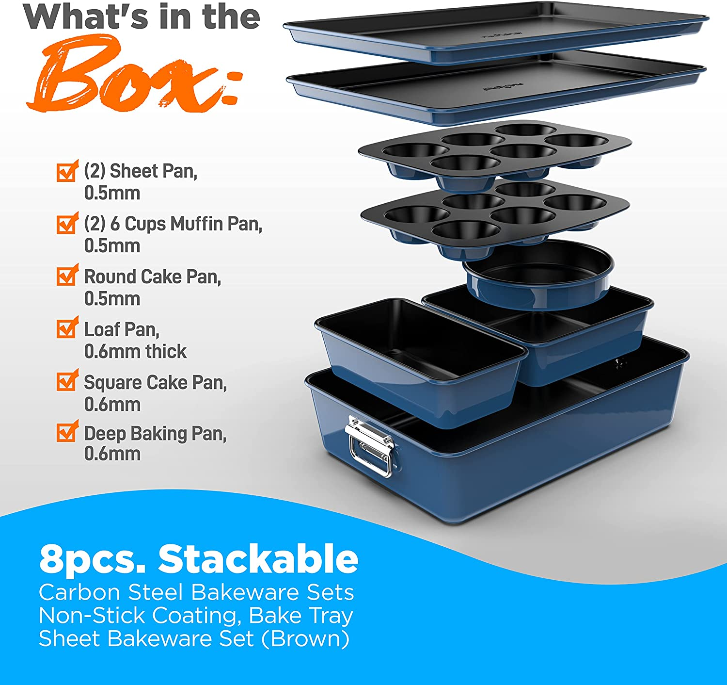 Nutrichef 8-Piece Nonstick Stackable Bakeware Set - PFOA, PFOS, PTFE Free Baking