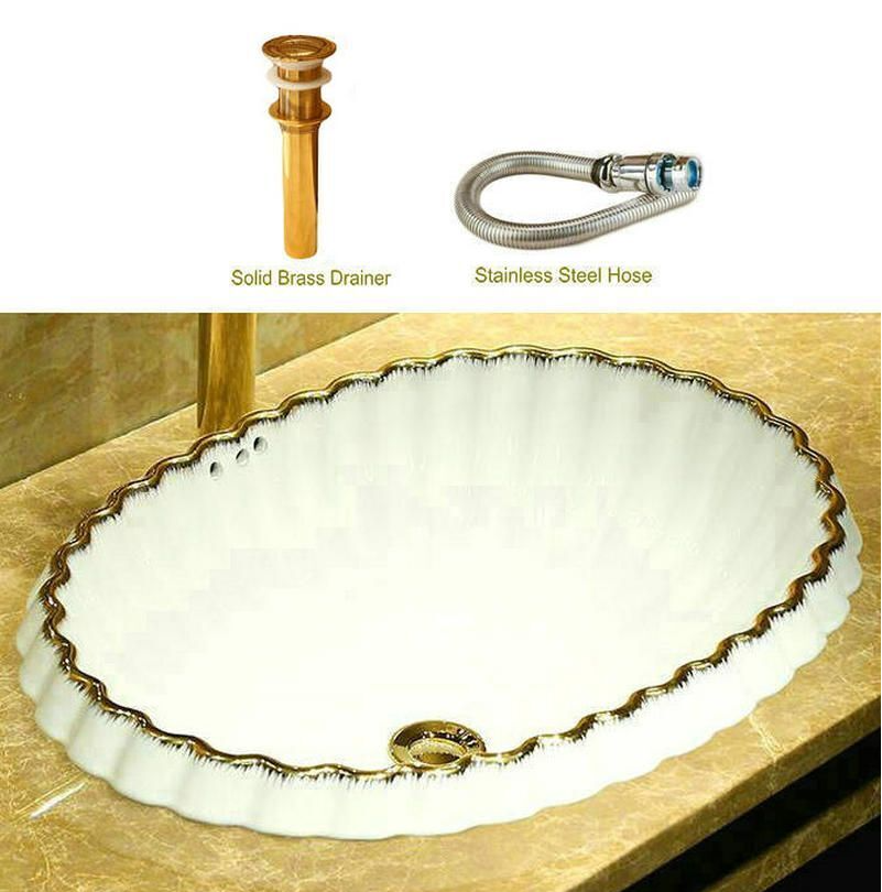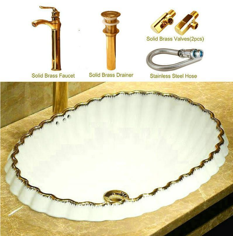 OVAL SEMI COUNTER WASH BASIN WITH OVERFLOW BATHROOM SINK WHITE PORCELAIN CERAMIC