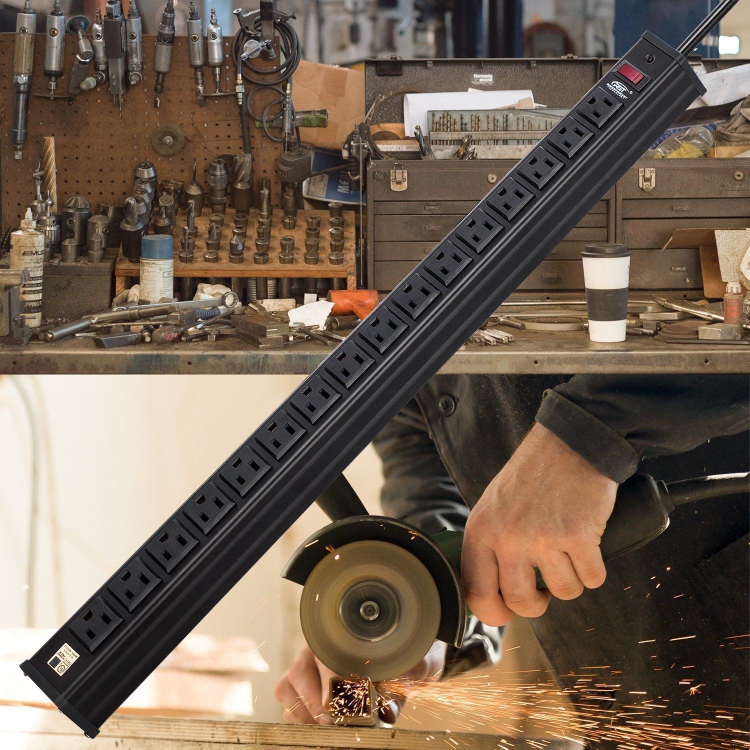 Power Strip Tower Surge Protector Power Strip with USB 12 Outlets with 4 USB Ports (1 USB C), Flat Plug 6.5FT Extension Cord Multi Plug Outlet Extender Overload Protection for Home Office
