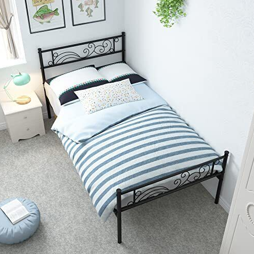 Weehom Metal Twin Bed Platform Frame Heavy Duty Steel Slat Under Bed Storage
